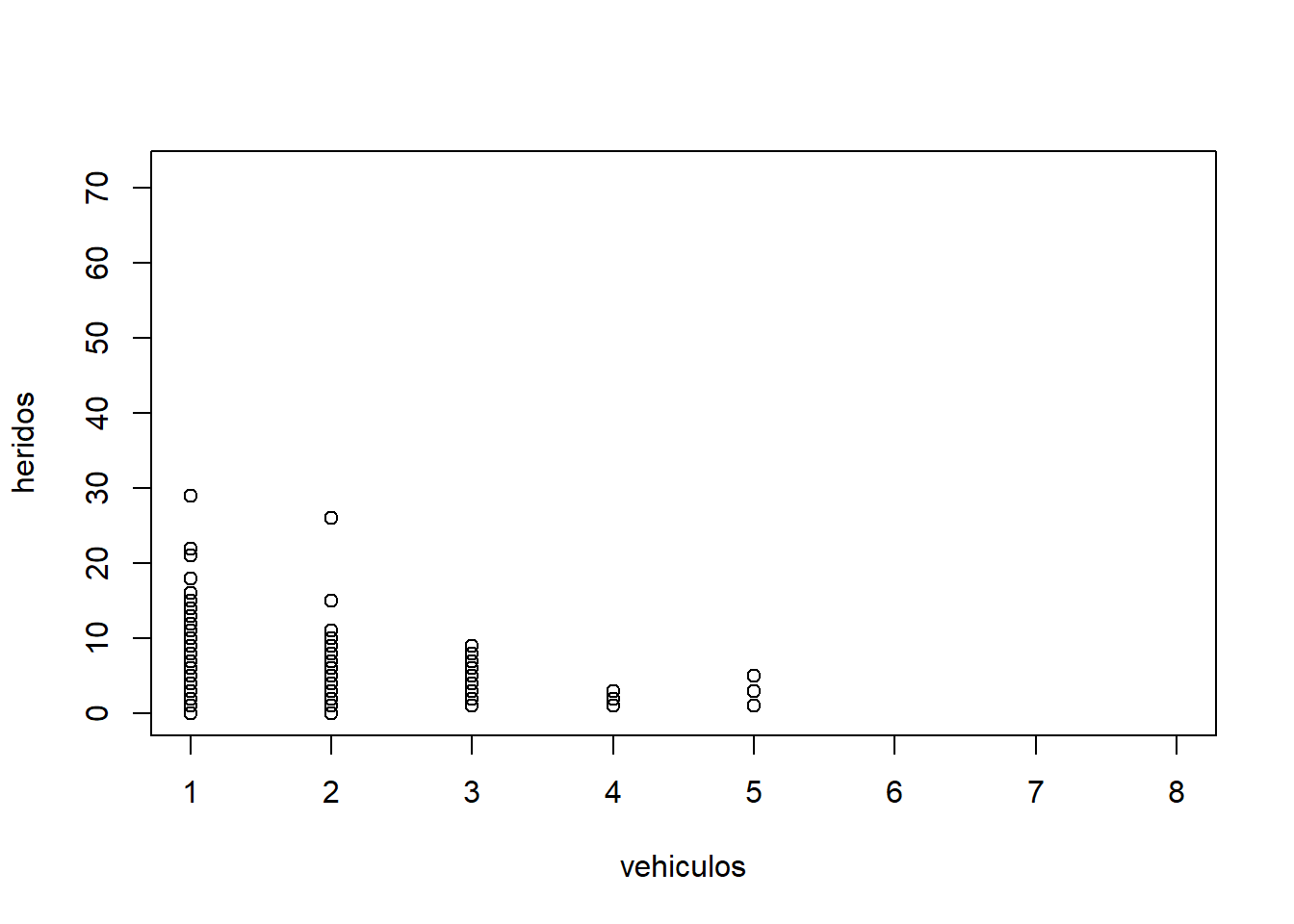 graph <- ggplot(data_at, aes(x=vehiculos, y=heridos)) + geom_point()