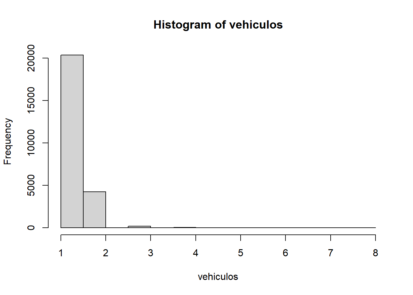 We checked if the independent variable automoviles involucrados (VI - AT_106_1) is numeric. A general look at the database shows that this number represents only the value for cars of sedan or hatchback models, while other automobiles such as trucks, station wagons, buses or vans are excluded from this count.