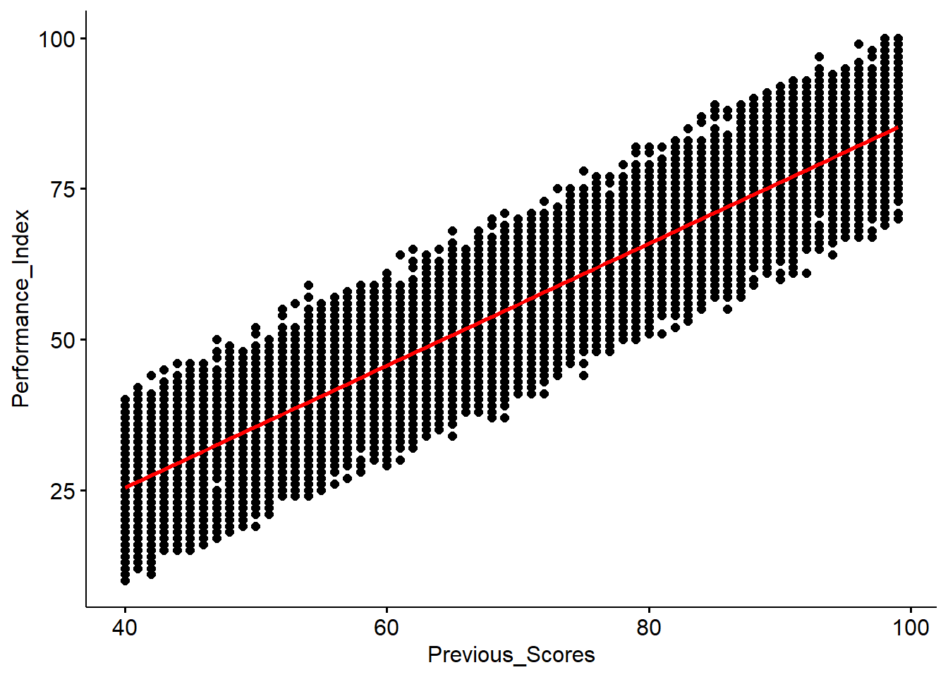 PreviousScore_lm <- lm(Performance_Index ~ Previous_Scores, data = Mydata)
